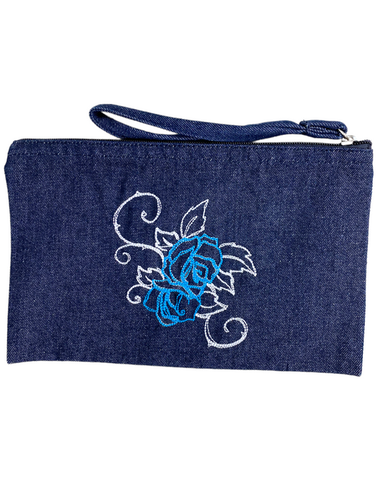 Denim bag with light blue and white rose detail