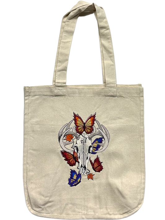 Butterfly and Deer Skull tote